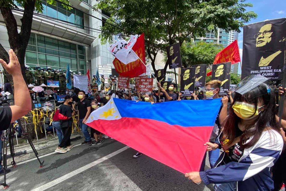 Ang mga miyembro ng iba`t ibang mga progresibong grupo na pinamunuan ng Akbayan Partylist ay nagsagawa ng rally sa harap ng Konsulado ng Tsina sa Makati noong Lunes, upang markahan ang ika-5 taon ng makasaysayang tagumpay ng bansa sa Permanent Court of Arbitration (PCA) na pabor sa pag-angkin ng Pilipinas sa West Philippine Sea. Pinuna ng grupo si Pangulong Duterte sa kanyang di-umano’y pagkilos upang panatilihin ang desisyon ng Hague at hinimok ang gobyerno na gawing makabago at bigyan ng kapangyarihan ang Philippine Navy at Philippine Coast Guard upang protektahan ang West Philippine Sea.