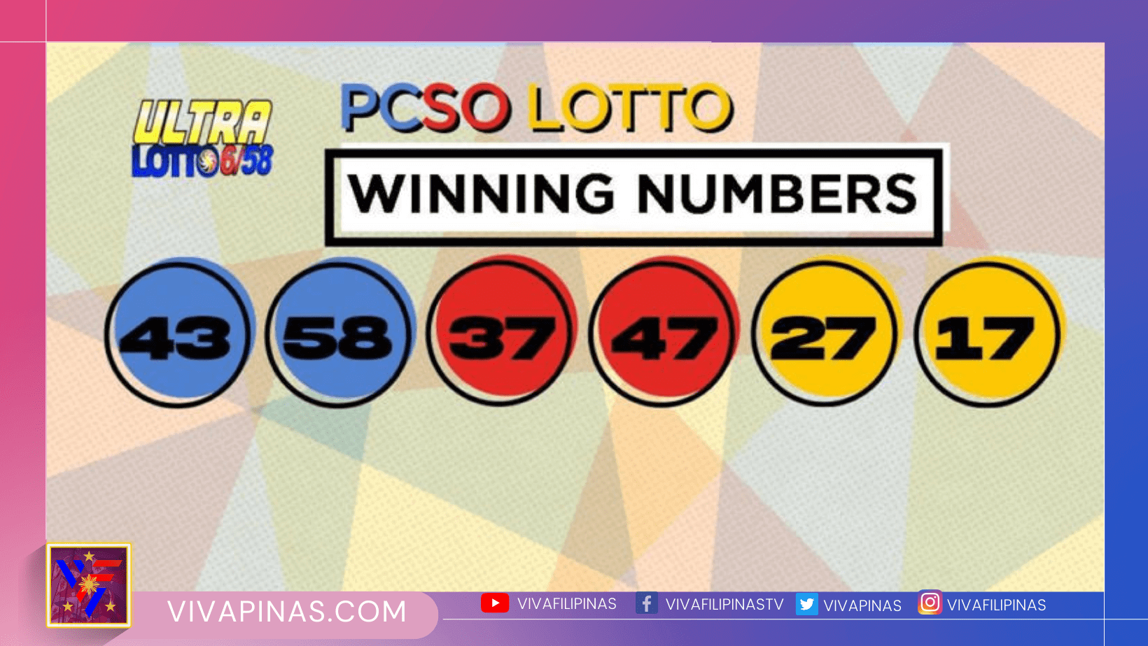 Ang mga nanalong numero ay 43, 58, 37, 47, 27, at 17 na may premyong P366,687,465.20.