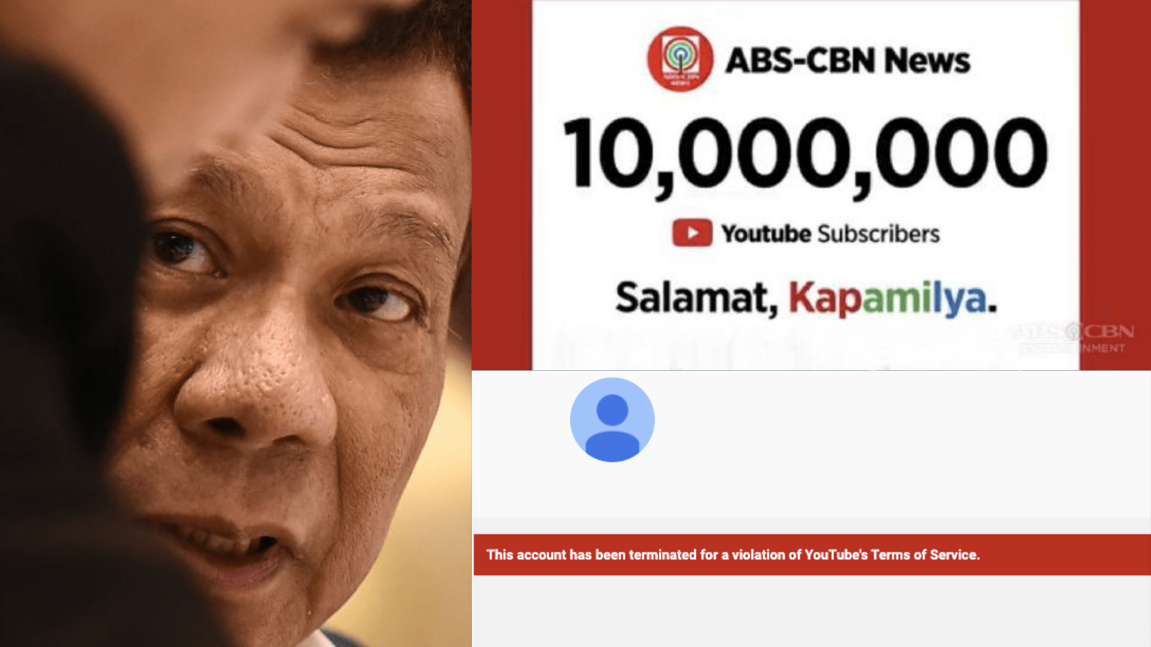 The Youtube account of ABS-CBN News shows was closed due to the fact that the account was “terminated for a violation of Youtube’s Terms of Service.”