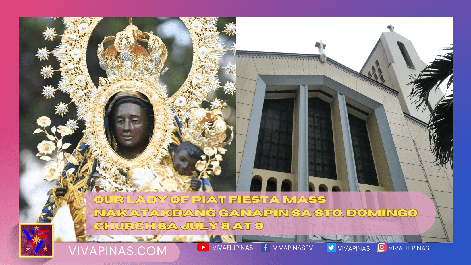 Kasunod ng 50 taong tradisyon, inaanyayahan ng mga deboto ng Nuestra Señora de Piat Foundation ang lahat ng mga peregrino na lumahok sa taunang pagdiriwang ng Eukaristiya ngayong taon na nakatakda sa Sto. Domingo Church sa Quezon Avenue noong Hulyo 8 alas-9 ng umaga.
